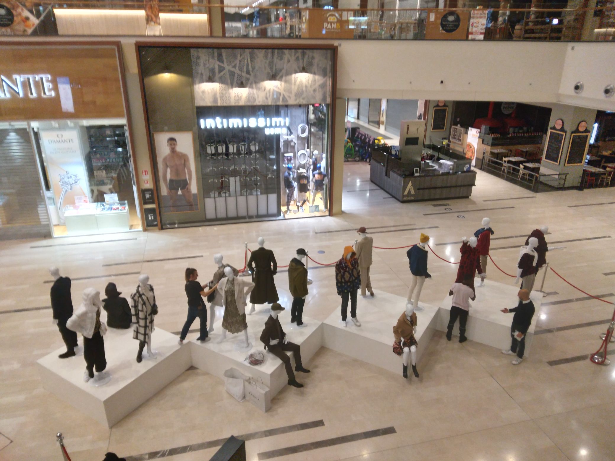 Progettazione e realizzazione di cuboni bianco lucido per esposizioni statica di manichini.