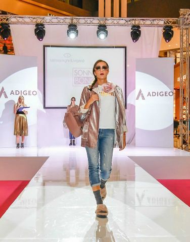 Palco e passerella bianco lucido per esposizione manichini e sfilata. Realizzazione e installazione di allestimento total white e di un camerino per il backstage delle modelle durante la sfilata.